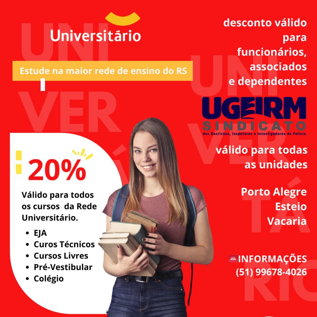 Desconto de 13% para associados da UGEIRM, mediante apresentação do cartão de sócio.