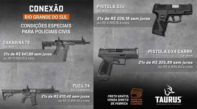 Exposição de armas Taurus, na UGEIRM, de terça (10) a quinta-feira (12)