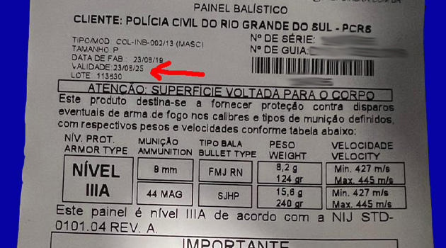 Lote de coletes da Polícia Civil com a validade vencida coloca policiais civis em risco