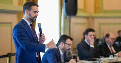 “Não podemos garantir que tenhamos um secretário da Fazenda forte”, criticou Marques, apontando no projetor a inscrição “Ausência de um Secretário da Fazenda forte” como uma das causas, junto com a recessão e posterior demora na retomada da economia, para o agravamento da crise financeira do Estado.