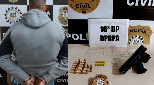 A equipe da 16ª Delegacia de Polícia de Porto Alegre, realizou, na última terça-feira (24), uma ação no bairro Restinga, na zona sul da cidade de Porto Alegre, que culminou com a prisão de um homem, apontado como liderança de uma das principais organizações criminosas do RS. O criminoso, de 34 anos, possui um extenso rol de antecedentes criminais, entre eles estão acusações de uma dezena de homicídios qualificados. Constam também de seus antecedentes, imputações por participação de organização criminosa, roubos majorados, associação criminosa, porte ilegal de arma de fogo de uso restrito, adulteração de sinal identificador de veículo automotor (“clonagem”), receptação de veículos roubados, entre outros crimes.