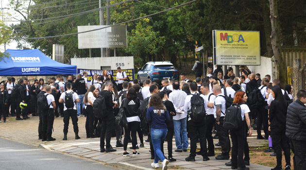 Durante a recepção aos (às) novos (as) alunos (as), a UGEIRM distribuiu um panfleto explicando o funcionamento do sindicato e convidando-os a integrar o quadro de filiados da entidade. Ao conversar com os (as) futuros (as) policiais, o Presidente da UGEIRM, Isaac Ortiz, sentiu uma grande expectativa por parte dos (as) novos (as) alunos (as). “Essa expectativa e vontade de fazer o curso da Acadepol e se formar como policial, é fundamental para a renovação da nossa Polícia Civil. São esses futuros policiais, que vão garantir que a Polícia Civil gaúcha prossiga sendo uma das polícias mais respeitadas do país e uma das instituições mais confiáveis para a população do nosso estado”. Ortiz lembra, também, que “a convocação da quinta turma é uma vitória da mobilização da UGEIRM em conjunto com o Movimento dos Aprovados da Polícia Civil. A luta incessante pela convocação de todos os aprovados, conseguiu convencer o governo da necessidade de convocação de uma nova turma”.