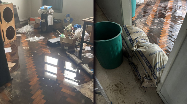 Situação semelhante é enfrentada pela DPCA de Caxias do Sul. No fim de junho, a direção da UGEIRM havia visitado a unidade e constatado as más condições de infraestrutura, enviando um ofício à Delegacia Regional para solicitar providências. Contudo, nada foi resolvido. No último fim de semana, a cena voltou a se repetir: alagamentos, goteiras e policiais improvisando soluções para salvar equipamentos e documentos, secando o chão e tentando evitar novos prejuízos. Além disso, o prédio apresenta buracos no piso, paredes mofadas, janelas danificadas por cupins e um depósito completamente abarrotado.